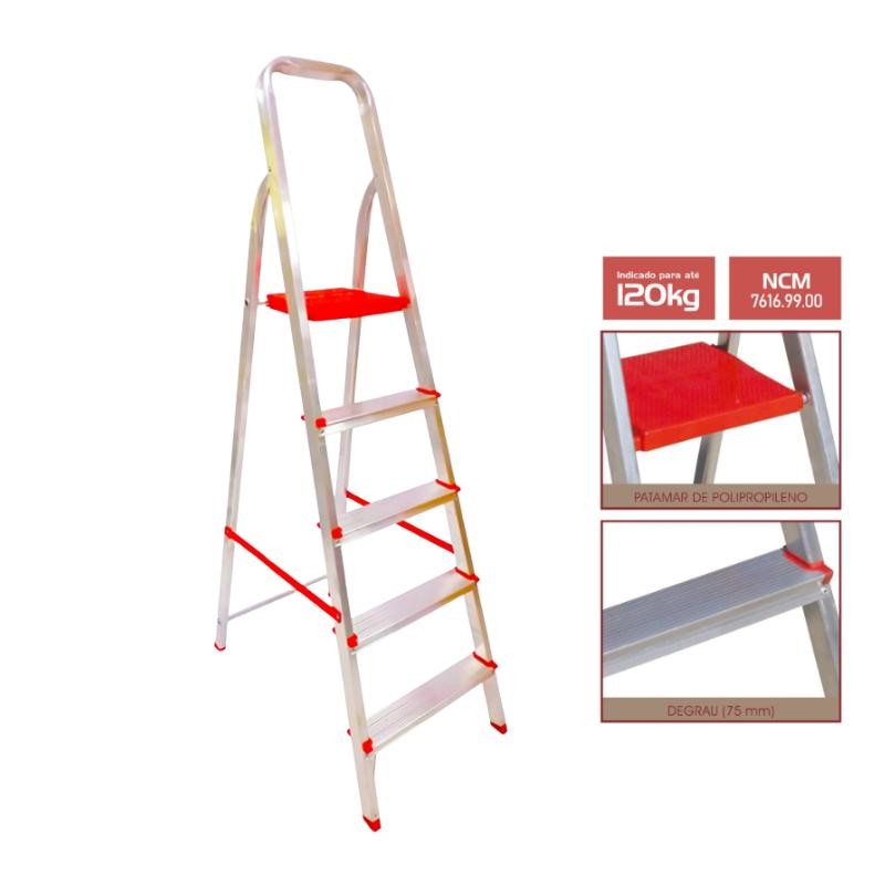 A escada alumínio Botafogo doméstica (abrir) 5 degraus é a escolha ideal para quem busca praticidade, segurança e durabilidade no dia a dia. Indicada para uso residencial, ela facilita tarefas rotineiras como alcançar armários altos, trocar lâmpadas, realizar pequenas manutenções, limpar superfícies elevadas e organizar ambientes com muito mais conforto e estabilidade. Fabricada em alumínio de alta qualidade, a escada alumínio Botafogo doméstica (abrir) 5 degraus se destaca por ser leve, resistente à corrosão e fácil de transportar. Seu material garante longa vida útil, mesmo com uso frequente, além de ser simples de limpar e manter.