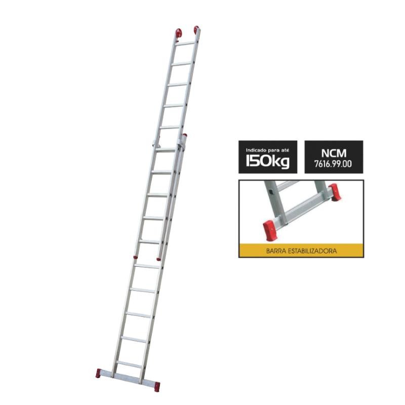 A escada alumínio Botafogo extensiva 10 degraus 2,97x5,00m é a solução ideal para quem precisa alcançar maiores alturas com segurança, resistência e praticidade.