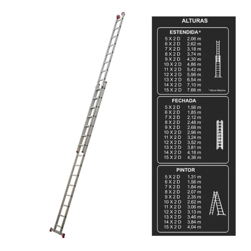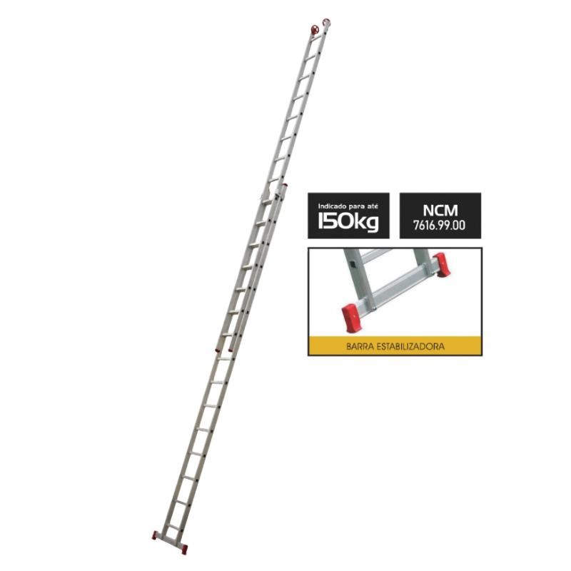 Escada Extensiva Alumínio 15 Degraus 150Kg