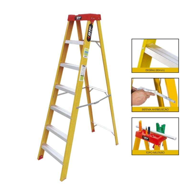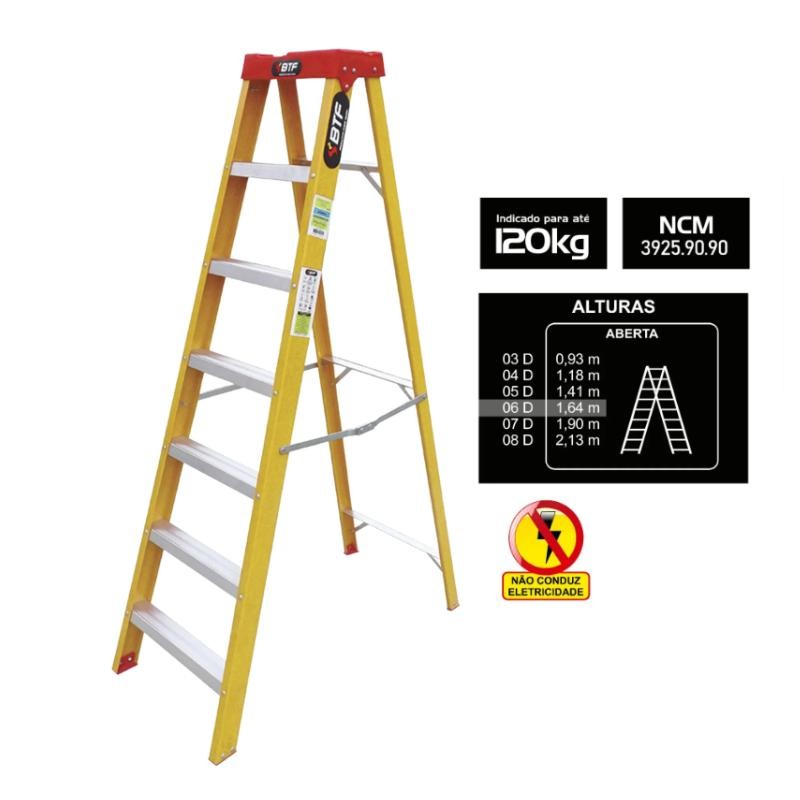 A escada fibra Botafogo tesoura 6 degraus é a escolha ideal para quem busca máxima segurança, resistência e estabilidade em trabalhos em altura. Indicada tanto para uso residencial quanto profissional, ela é amplamente utilizada em serviços elétricos, manutenção predial, instalações, pintura, limpeza e atividades que exigem um equipamento confiável e durável. Fabricada em fibra de vidro de alta qualidade, a escada fibra Botafogo tesoura 6 degraus oferece um grande diferencial em relação aos modelos metálicos: o isolamento elétrico. Essa característica torna o produto especialmente recomendado para eletricistas e profissionais que atuam próximos a redes elétricas, proporcionando mais segurança durante o uso.