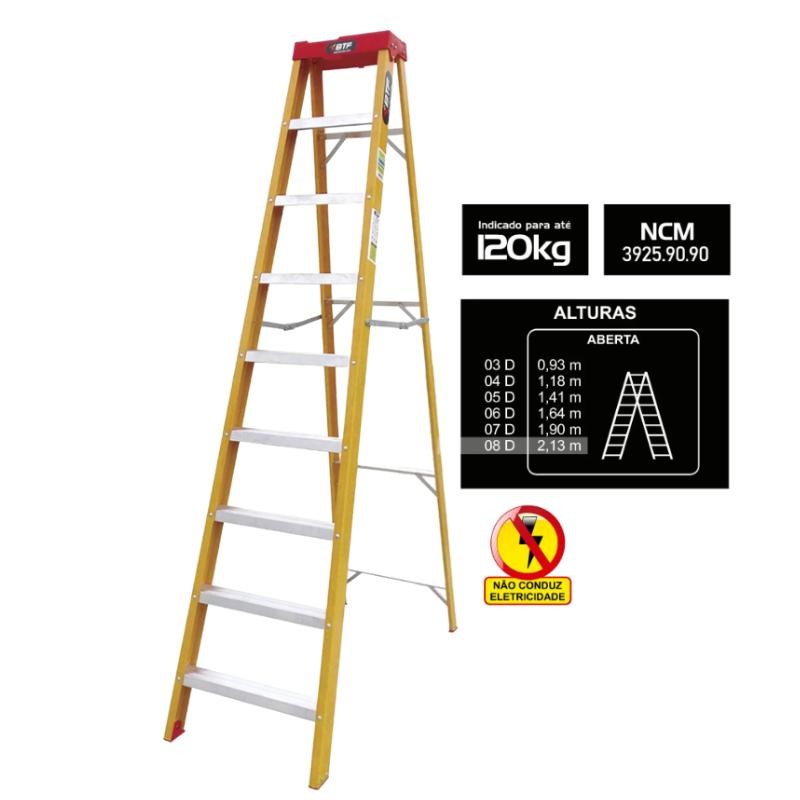 Escada Fibra Tesoura 8 Degraus 120Kg