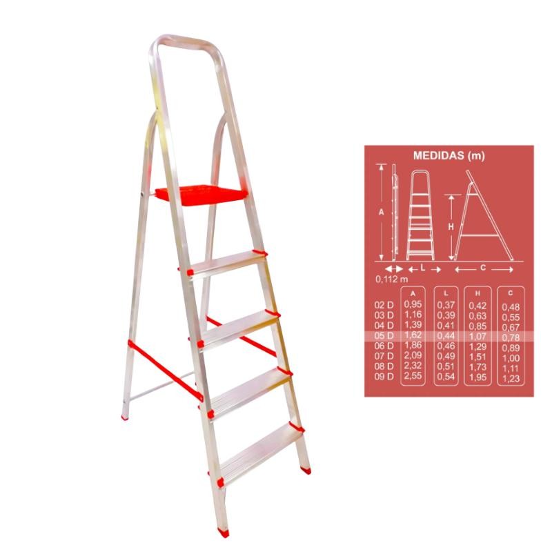 A escada alumínio Botafogo doméstica (abrir) 5 degraus é a escolha ideal para quem busca praticidade, segurança e durabilidade no dia a dia. Indicada para uso residencial, ela facilita tarefas rotineiras como alcançar armários altos, trocar lâmpadas, realizar pequenas manutenções, limpar superfícies elevadas e organizar ambientes com muito mais conforto e estabilidade. Fabricada em alumínio de alta qualidade, a escada alumínio Botafogo doméstica (abrir) 5 degraus se destaca por ser leve, resistente à corrosão e fácil de transportar. Seu material garante longa vida útil, mesmo com uso frequente, além de ser simples de limpar e manter.