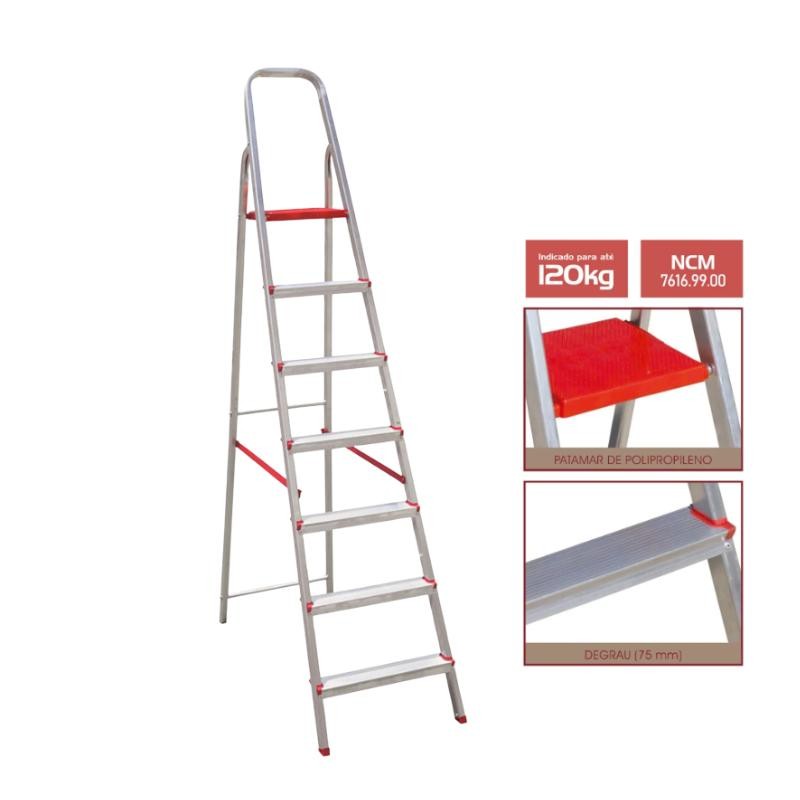 Escada Alumínio 7 Degraus 1,12m 120Kg