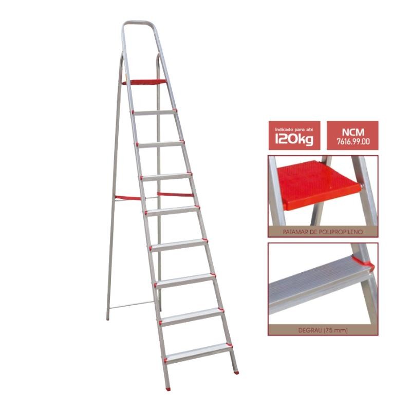 Escada Alumínio 9 Degraus 1,12m 120Kg